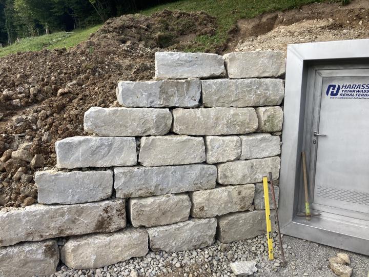 Erstellung einer Böschungsstützmauer am neuen Hochbehälter Fahrnpoint