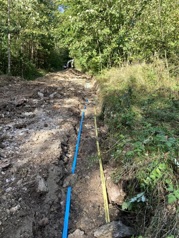 Jetzt gehts wieder weiter mit den Leitungsgräben vom Hochbehälter nach unten zum Anwesen
