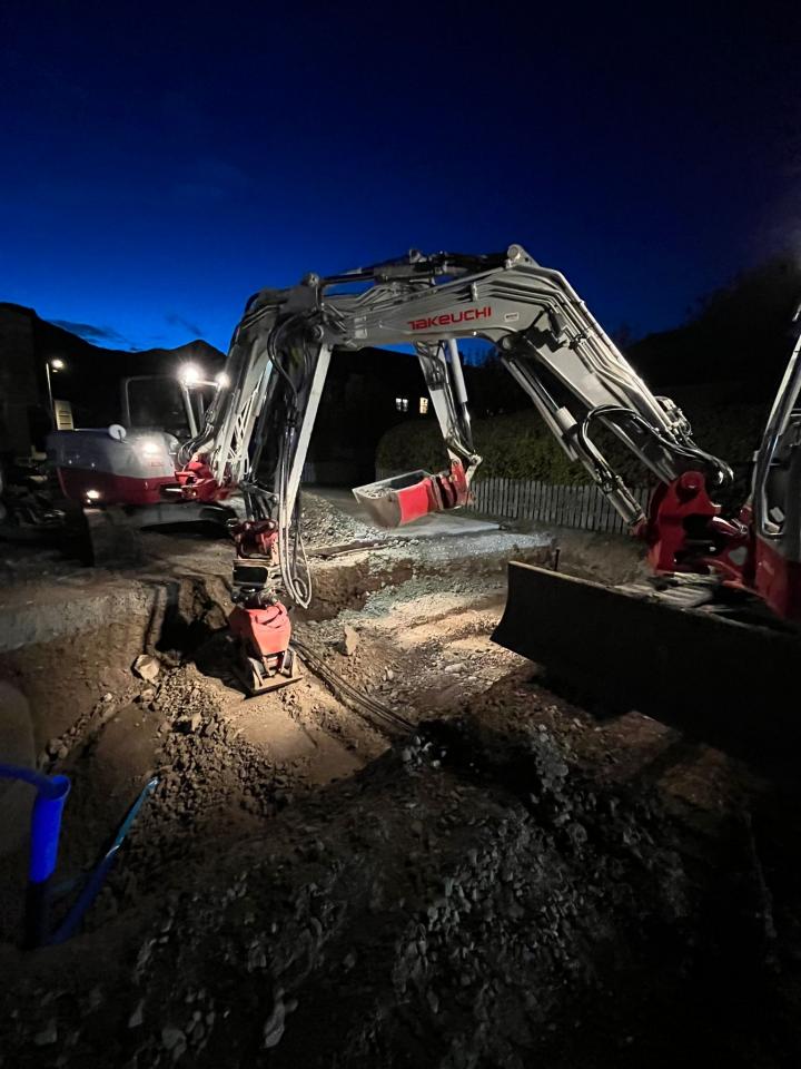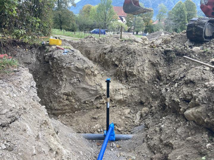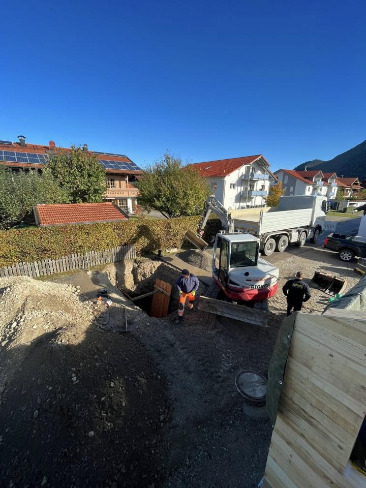 Für ein Bauvorhaben in Marquartstein führten wir die gesamten Erdarbeiten aus inklusive der Verlegung aller Grundleitungen