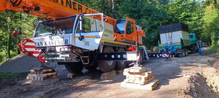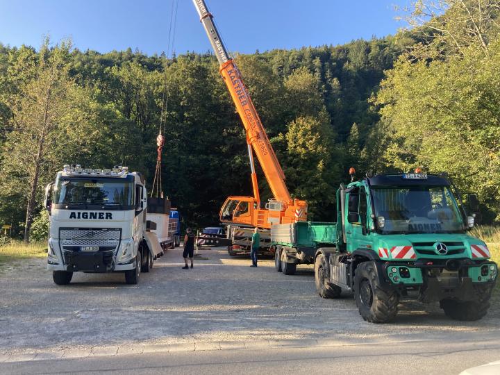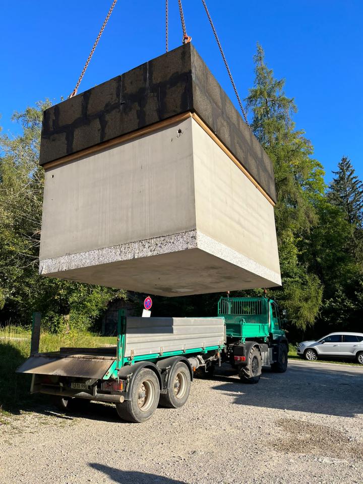 Transport eines 20 Tonnen schweren Druckerhöhungsschachtes