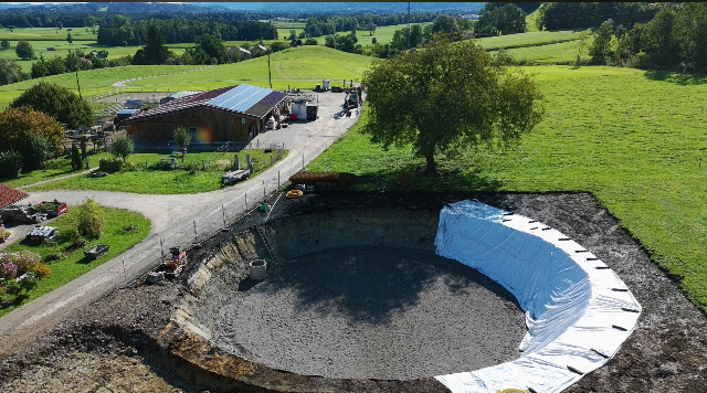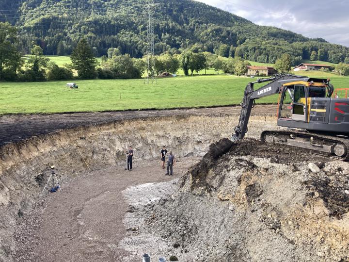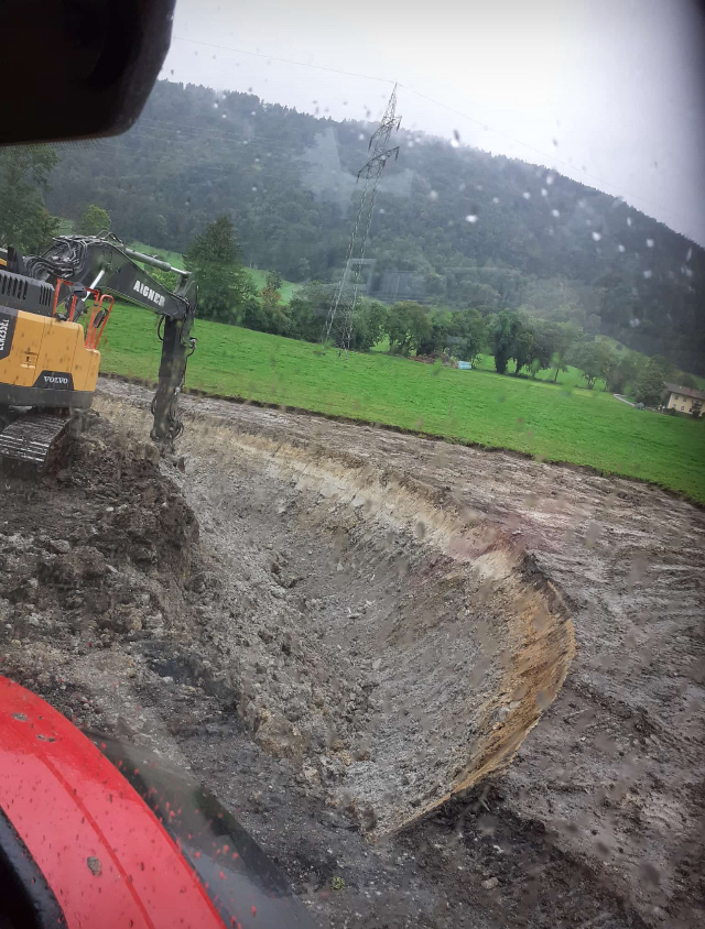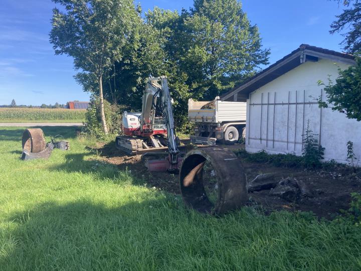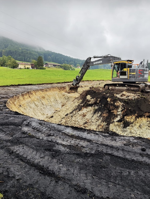 Beginn der Aushubarbeiten für eine neue Güllegrube in Bernau
