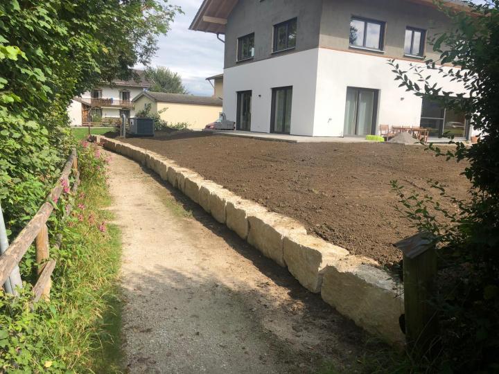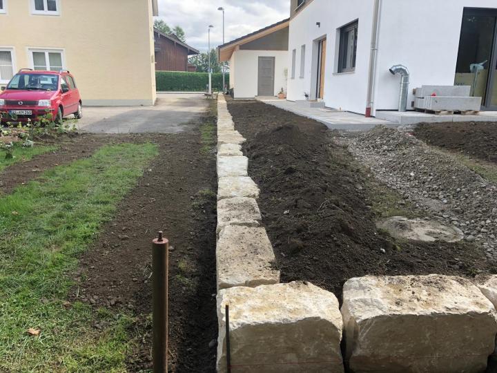 Erstellung einer Grundstückseinfassung mit Quadersteinen in Übersee