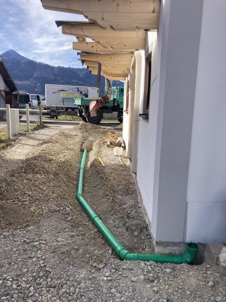 Erstellung einer Sickerrigole an einem Gewerbebau in Marquartstein