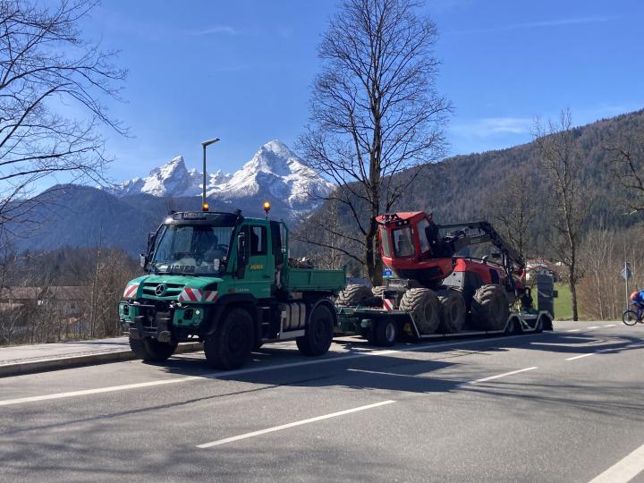 Transport eines Harvesters ins Berchtesgadener Land