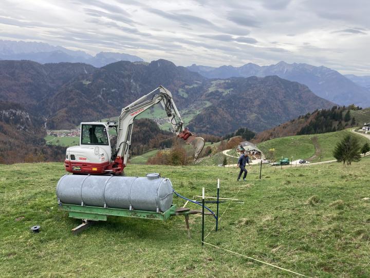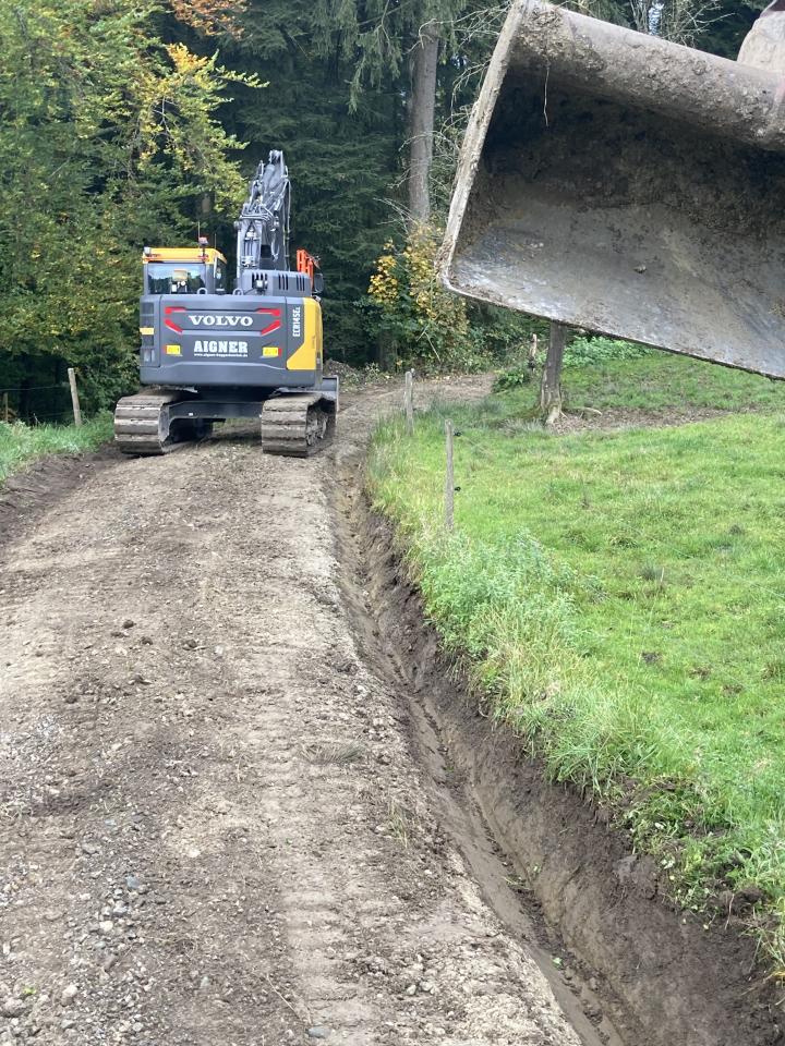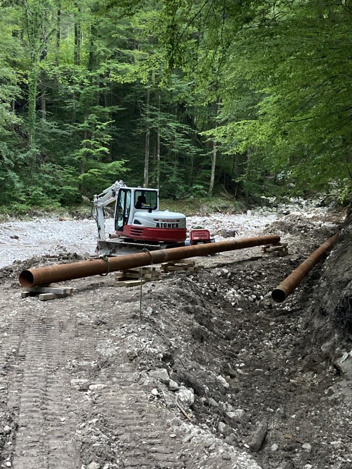 Erdarbeiten für den Einbau einer neuen Wasserleitung für zwei Viehtränken
