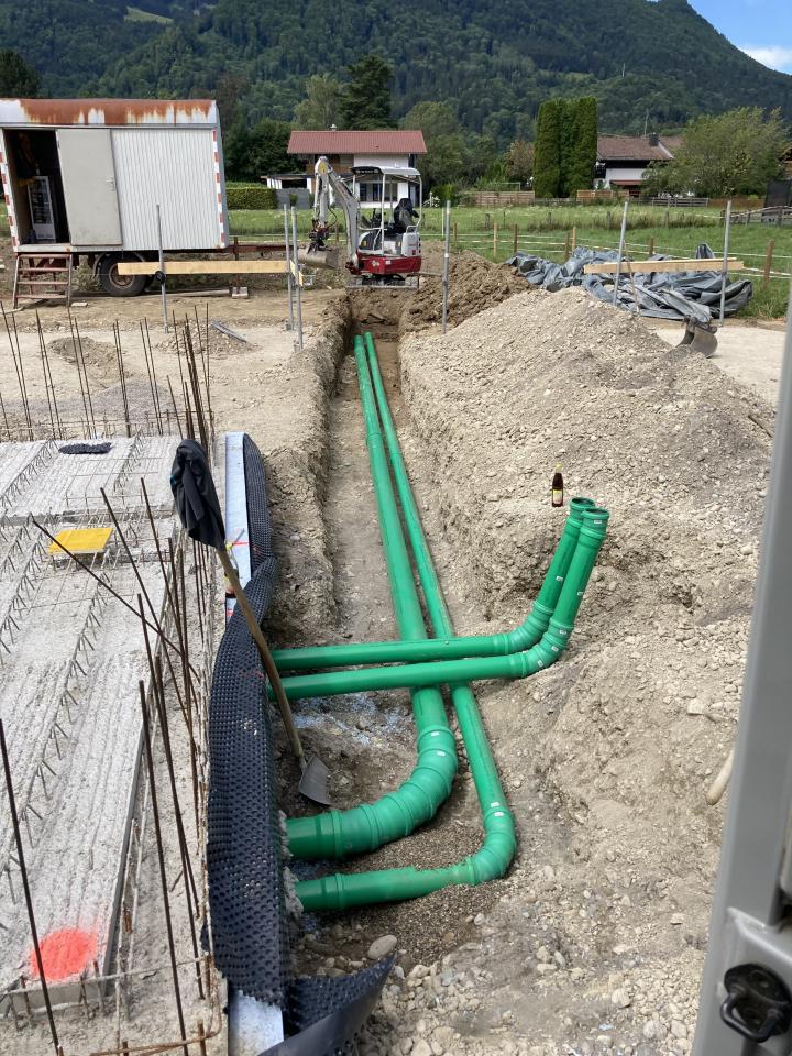Einbau von Leerrohren für Versorgungsleitungen an einem Neubau in Grassau