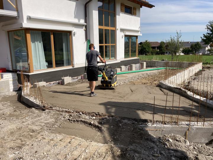Erstellung eines Frostsicheren Kiesunterbaues für eine Terrasse in Marquartstein
