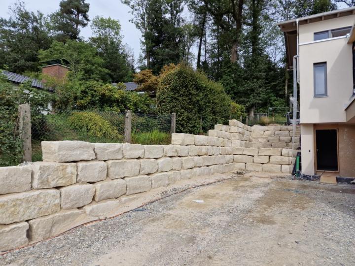 Ein weiterer Teil der Stützmauer an der Baustelle in Traunstein