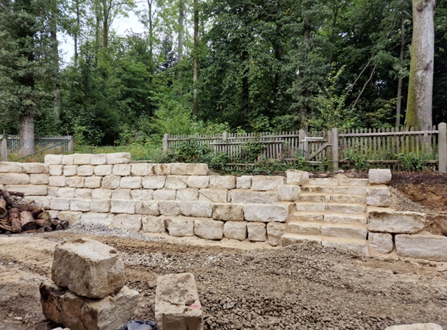 Errichtung einer großen Stützmauer an einer Baustelle in Traunstein