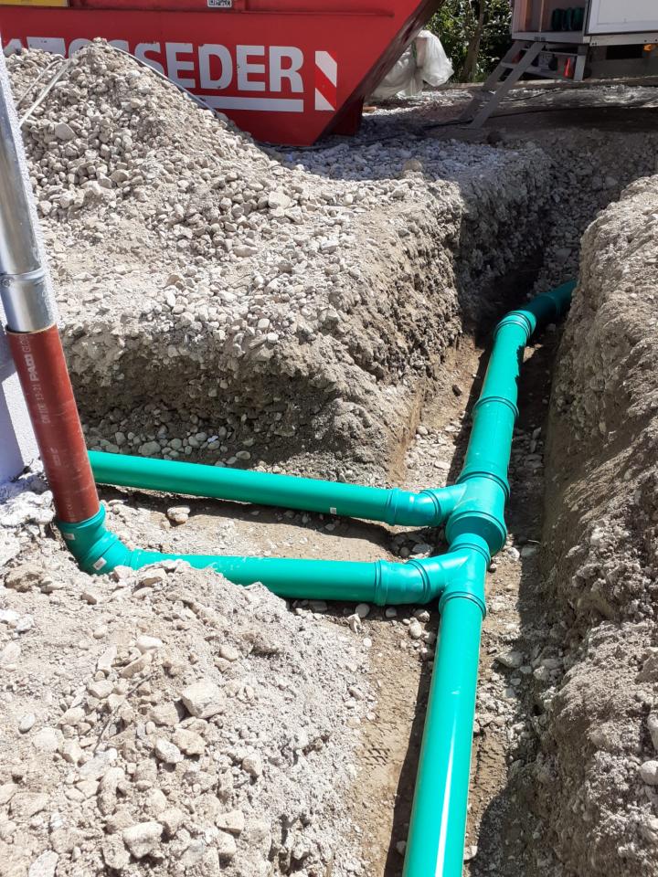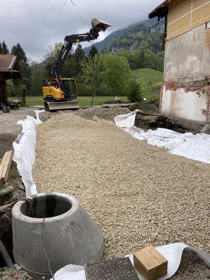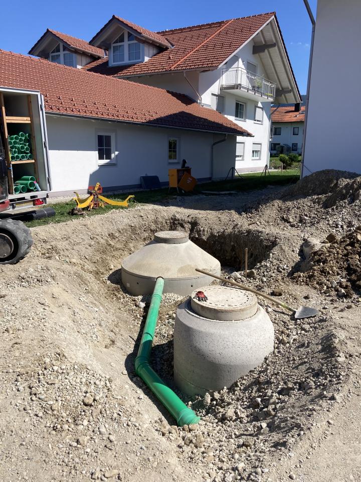 Einbau eines Sickerschachtes sowie Verlegung der Regenentwässerungsleitungen