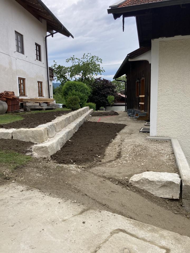 Böschungssicherung und gleichzeitig Grundstücks- Grenzmauer in Staudach