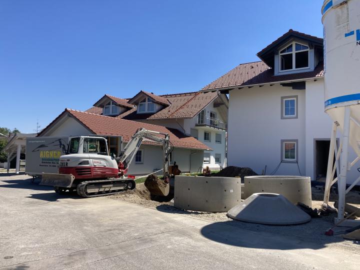 Erstellung der Regenentwässerung an einem Neubau in Bernau