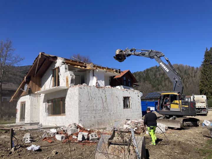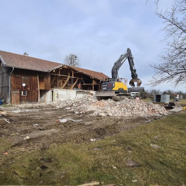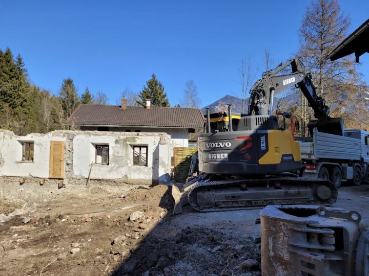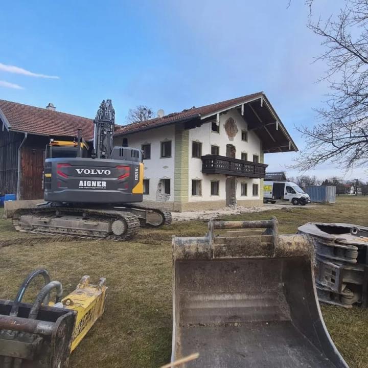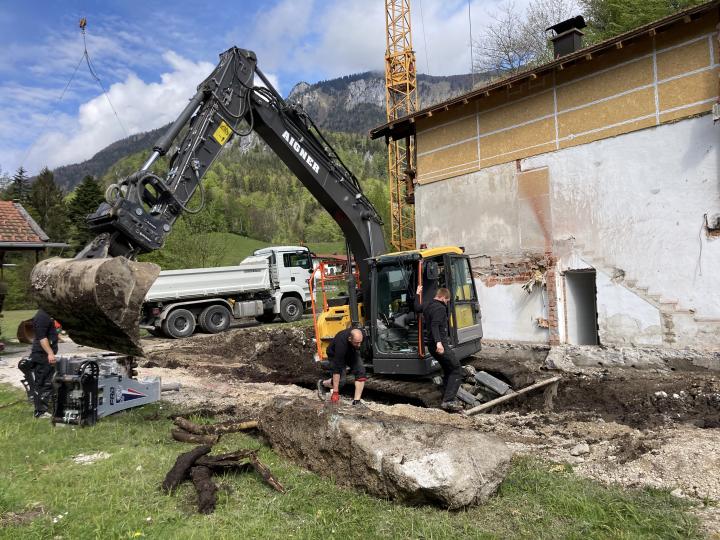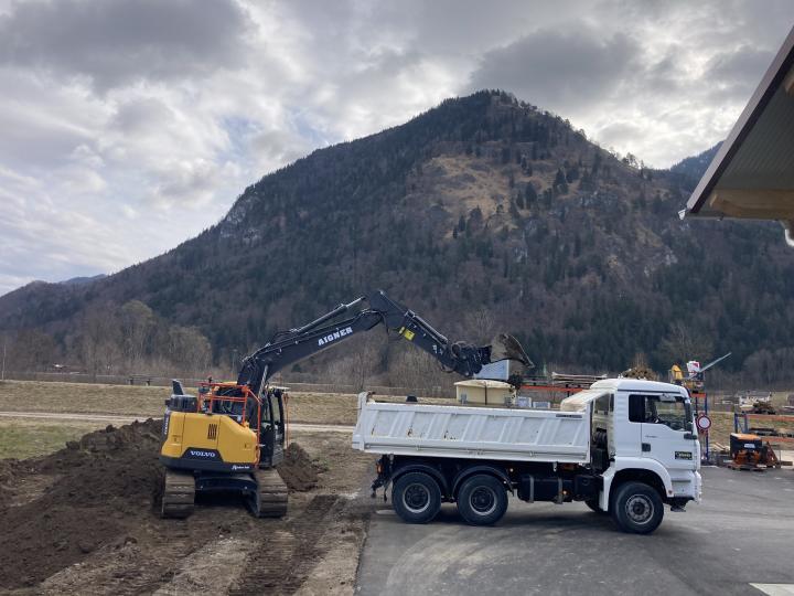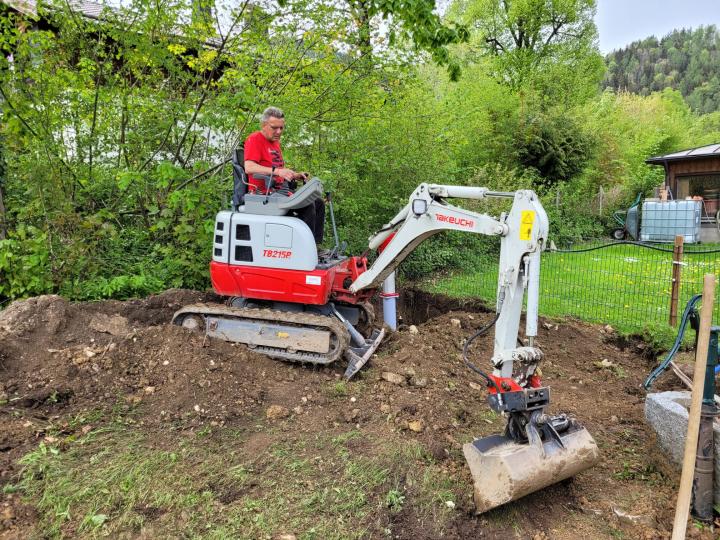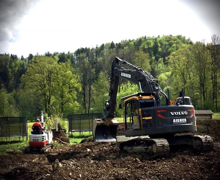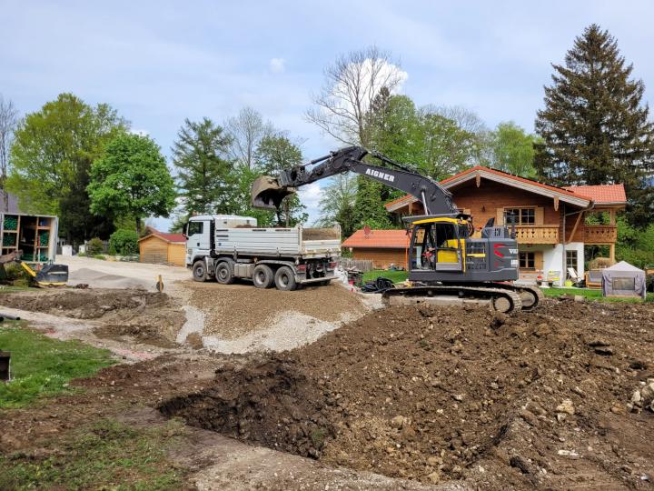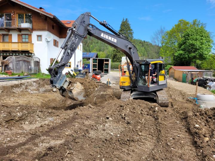 Baugrubenaushub für ein neues Wohnhaus in Raiten