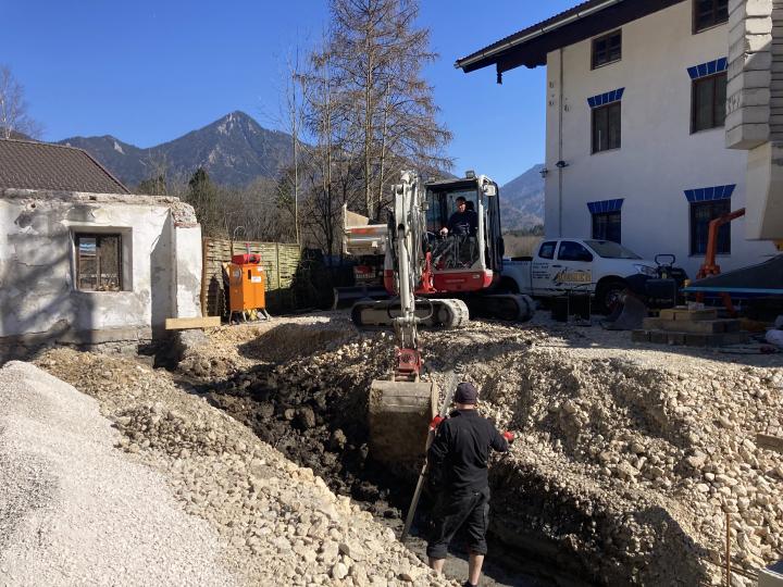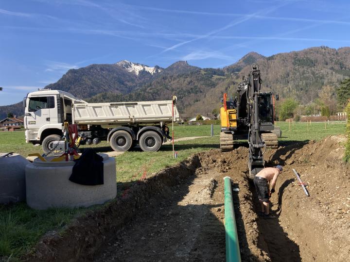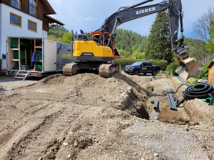 Erdarbeiten für die Erschließung eines Baugrundstückes in Niedernfels