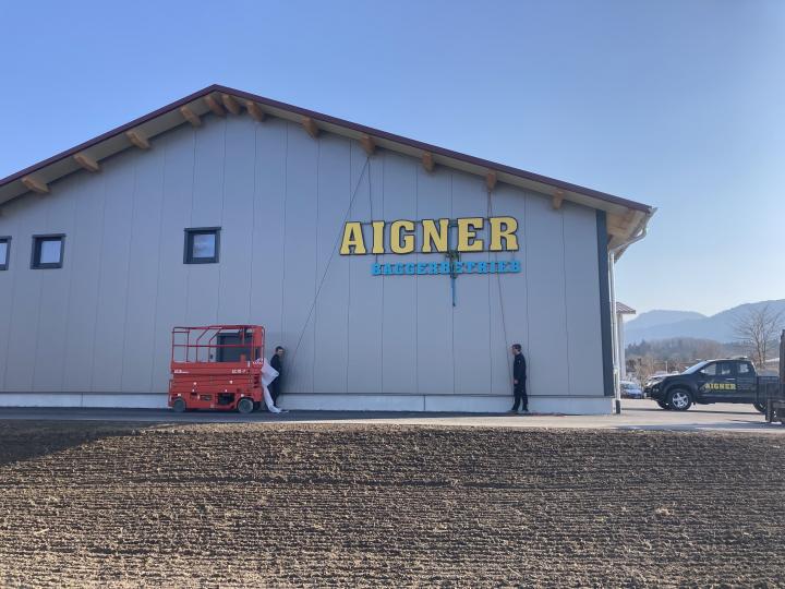 Letzte Woche montierten wir unseren Schriftzug an unser neues Betriebsgebäude