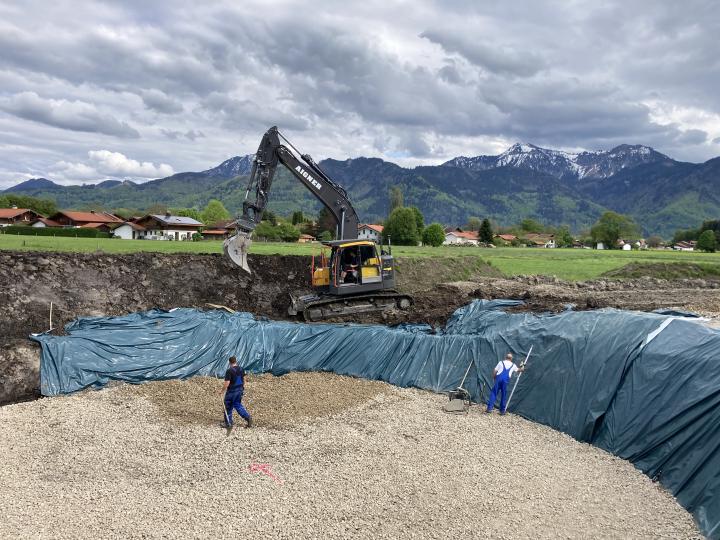 Erdarbeiten für ein neues Stallgebäude in Übersee