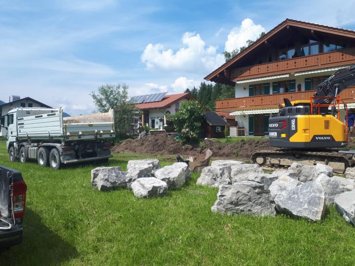 Baugrubenverfüllung nach dem Abbruch eines Altgebäudes in Grassau